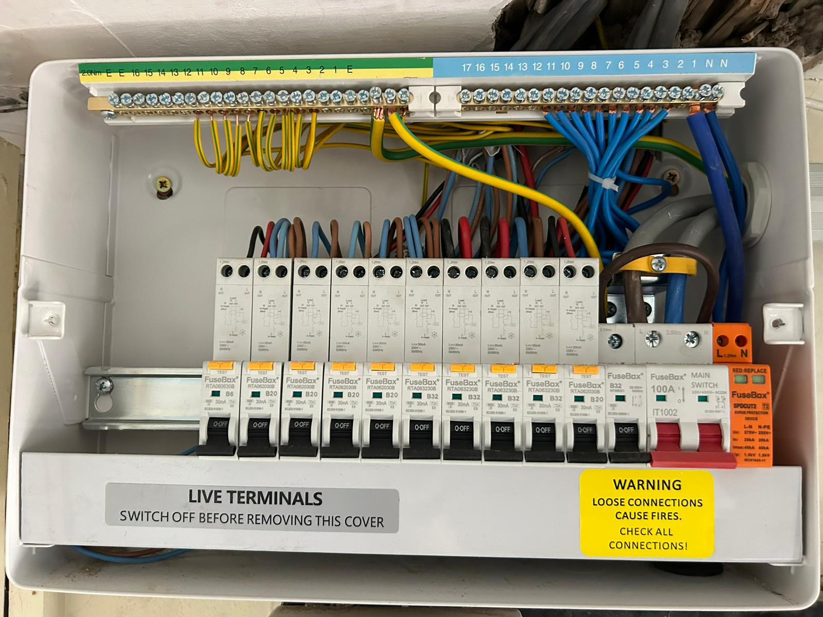 To resolve it properly, we replaced the outdated board with a new RCBO setup, added surge protection, and carried out full testing. The result? No more nuisance tripping, and the client now has a safer, fully compliant installation.