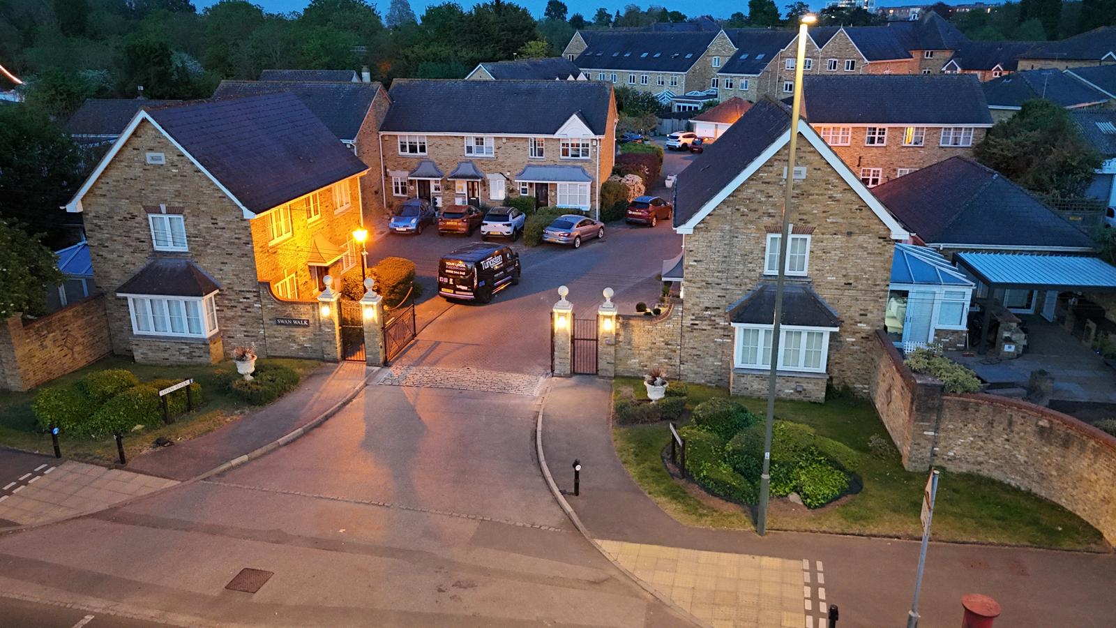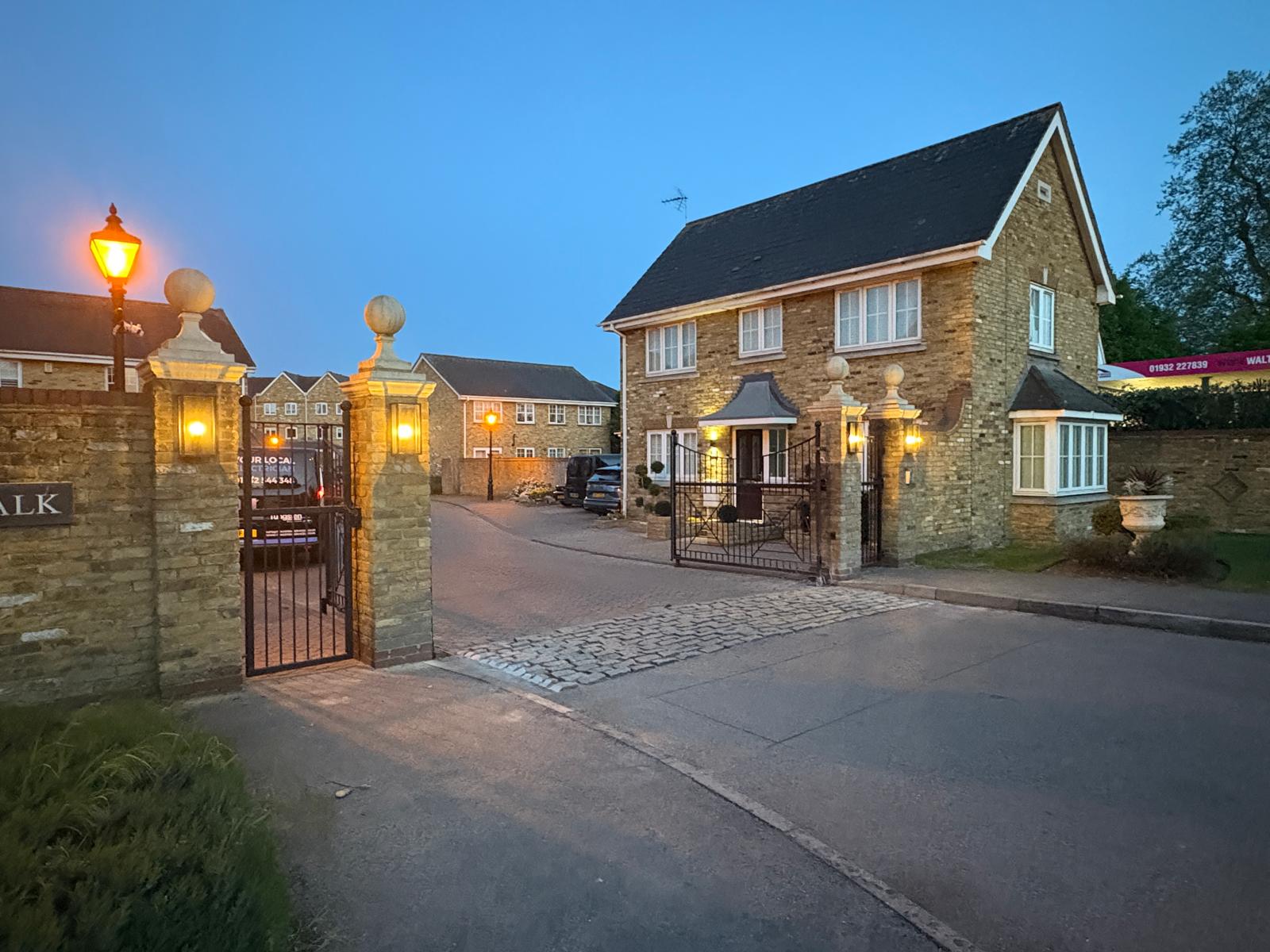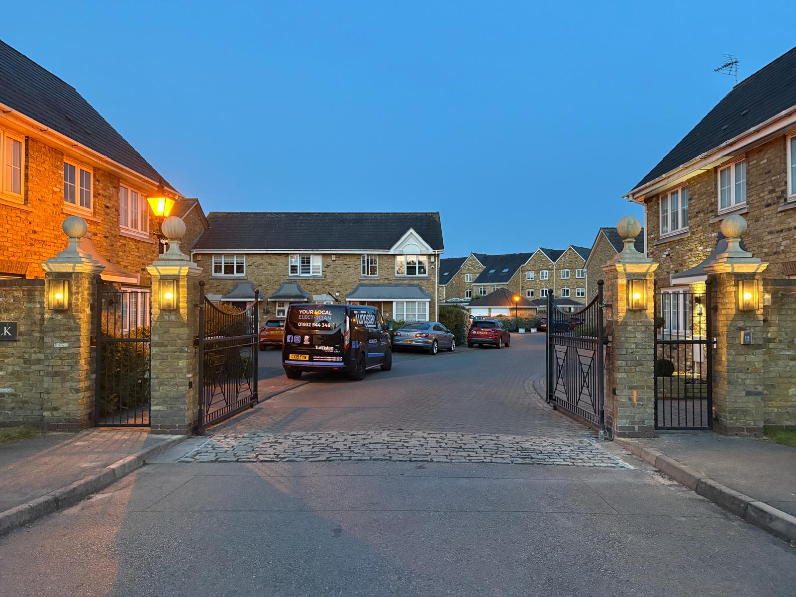 We recently completed a tidy outdoor lighting job in Shepperton that really improved the entrance to a private estate and added some evening curb appeal. The client had four brick pillars at the driveway entrance, not far from the famous Walton Bridge, and wanted them lit with something classic yet effective.